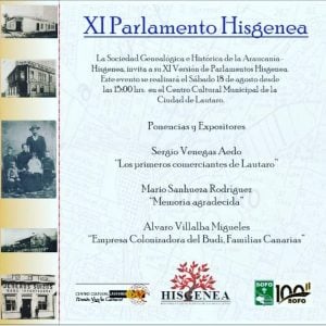 La Sociedad Genealógica e Histórica de la Araucanía, invita cordialmente al onceavo Parlamento Hisgenea.