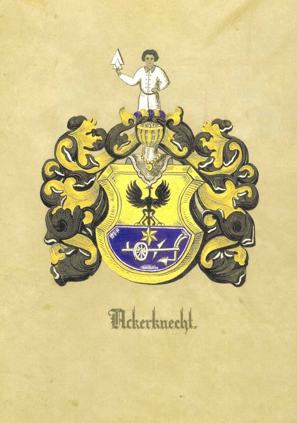 Georg Ackerknecht (1,3), n. Metzing, Alemania, c. 1558, + Alemania 1625; ▬ c. Schwarzwald 10 noviembre 1589 c. Anna Schweycker [n. c. 1562 h. Bartlin Schweycker (n. c. 1530)]. Hijos registrados: