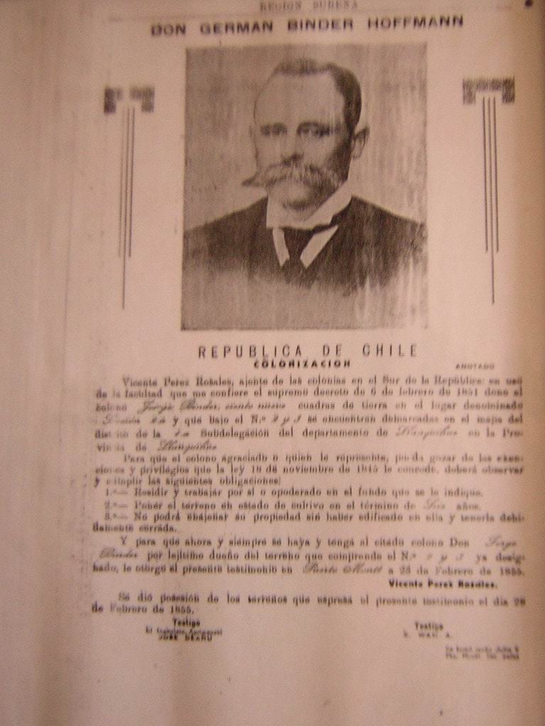 Fotografía y biografía de Germán Binder Hoffmann que se encuentra en el Museo Alemán Antonio Felmer en Nueva Braunau. Fotografía es cortesía de Héctor Binder Serón.