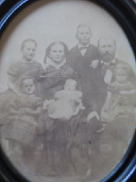Familia Holzapfel Deppe en c. 1903. De izquierda a derecha, atrás: Hermine Seinecke Deppe, Clemente (Tito) Holzapfel Deppe (hijo), Carolina (Nita) Seinecke Deppe, Pauline Holzapfel, Antonia (Tona) Holzapfel. Adelante: Marta Holzapfel, Karl Riedel (marido de Hermine), Clementine (Cleme) Holzapfel, Caroline (Lina) Deppe Macke de Holzapfel, Laura (Lula) Holzapfel, Clemente Holzapfel Weber (padre), Carlos Holzapfel. Proporcionada por