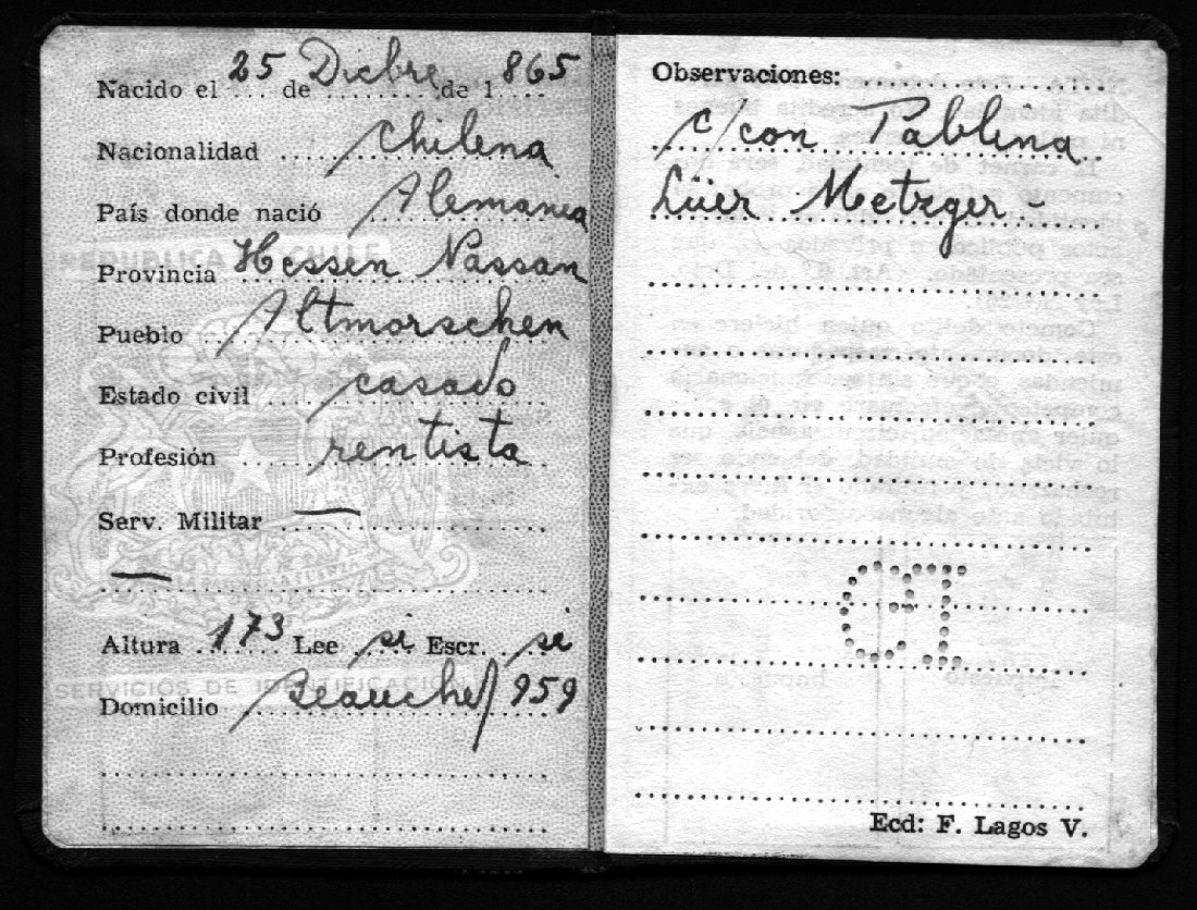 Federico Gabler Metzdorff (FAMI02), n. 1906, + Santiago 14 mayo 1965.
