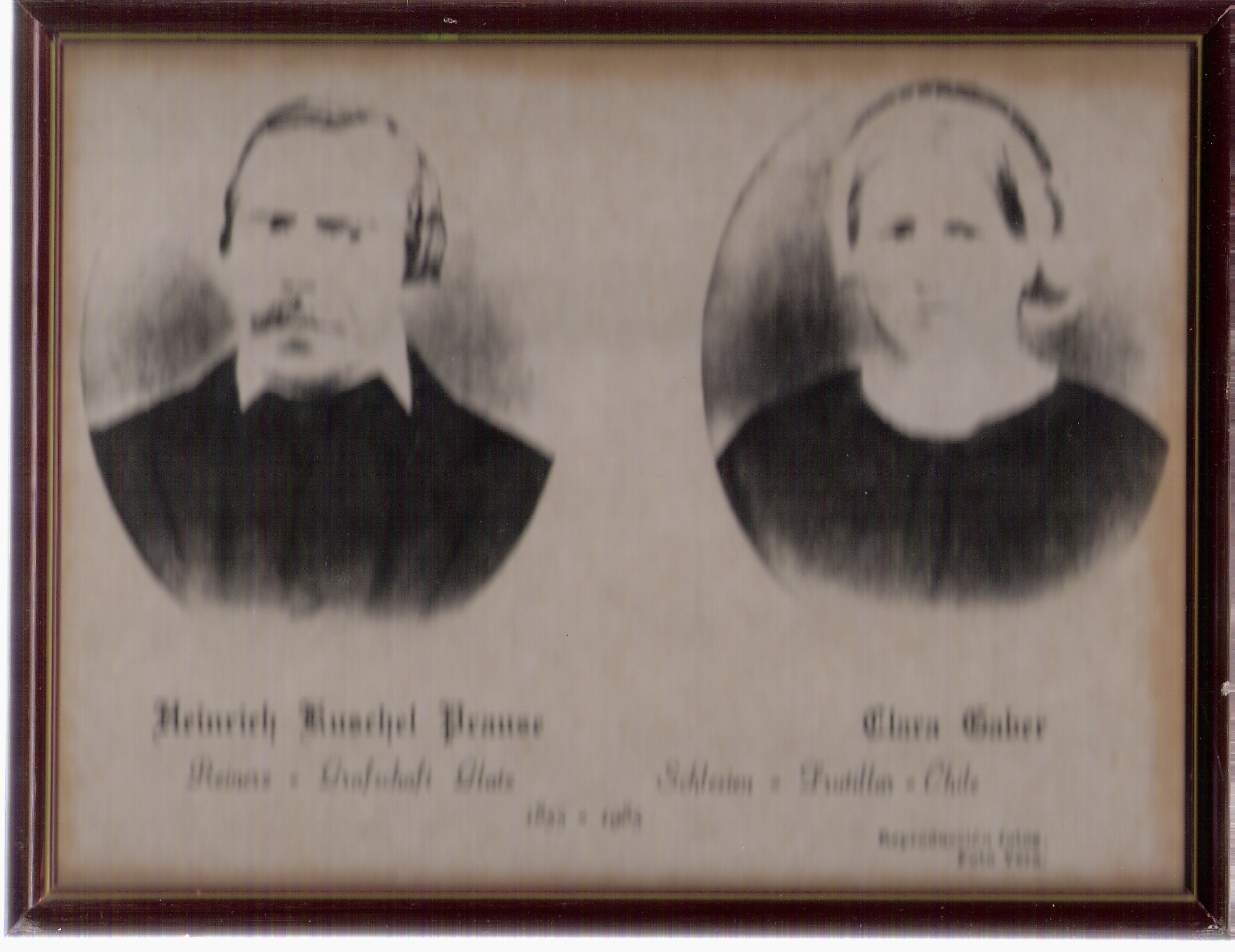 Heinricus (Heinrich) Kuschel Prause (HELD1970;LEGA2002;SIEH1997), n. Reinerz 16 agosto 1823, b. 19 agosto 1823 (madrina: Katharina, esposa de Franz Freudenrich), + Frutillar 26 octubre 1873, sepultado en cementerio parroquial que donó a la Parroquia Amando Winter; agricultor; llegó con su esposa Clara Gaber y sus hijos Wendelin, David, Joseph y Wilhelmine, a Corral en octubre 1855 en el barco hamburgués Reihersteig, al mando del Capitán Jacob Hamann, que zarpó de Hamburgo hacia Corral y Valparaíso el 26 junio 1855; se alojaron en Ancud en casa de Santiago Ebensperger y llegaron a Puerto Montt en la balandra Juan de Dios Navarro el 26 junio 1855; recibió la chacra N°35 en Frutillar, que perteneció primero a Federico Sangmeister; c. 1869 adquirió la chacra N°38a de Frutillar, que perteneció a Federico Ulm;