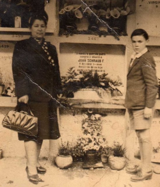 Germán Ernesto Otto Sylvester Pluschke (FAMI02), hijo de Paulina Cristina Ema Luisa Pluschke Heinrich; n. Providencia 07 enero 1913, + Las Condes 27 diciembre 2006; ▬ c. Osorno 04 diciembre 1937 c. Norma Riedel Hinostroza [n. 1913, + 2007].
