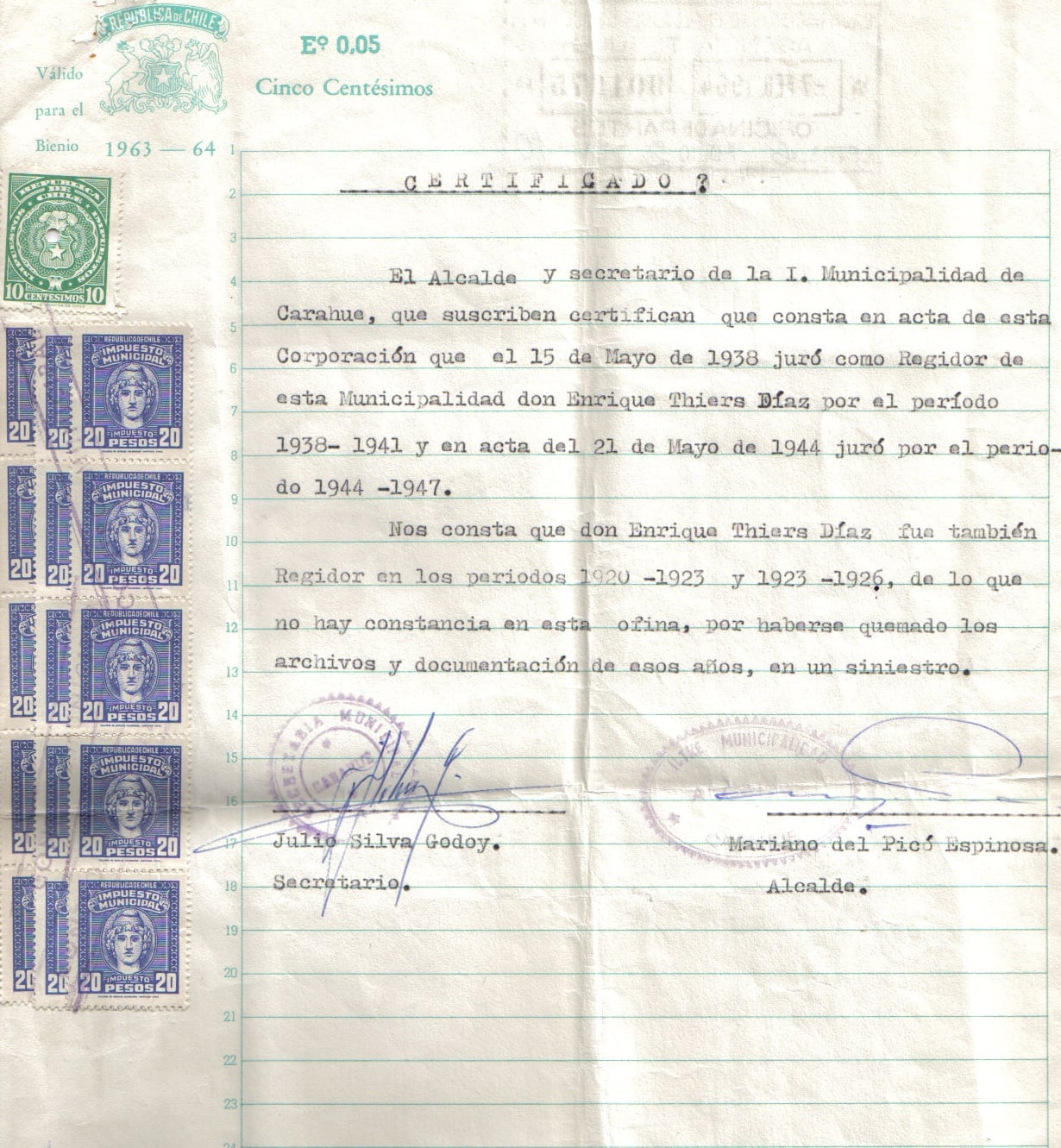 Erico Américo Tatter Oñate (PILC03), n. 22 diciembre 1937❐ (RC Reumén, 1945/N°98); ▬ c.c. Juana Ida Ríos Neira [n. 13 julio 1949❐; h. Oscar Ríos Gómez y Juanita Emelina Neira González].