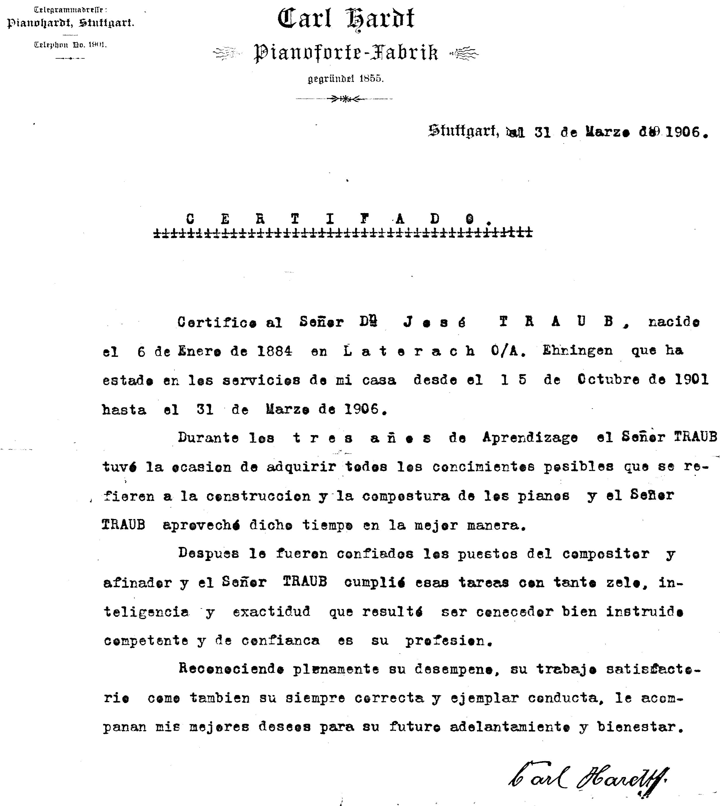 José Antonio Traub (LEGA2005;EMAH01) c. (S) c. Carmen Emaldía Hoffmann [h. Luis Emaldia Alvarado y Mónica Hoffmann Horn]. Hijos: