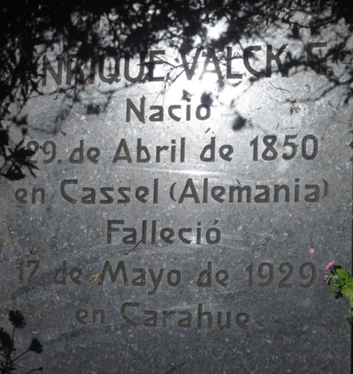 Lápida de Arnulfo Valck Momberg. Proporcionada por Marco Barrientos Reyes (31 diciembre 2012).