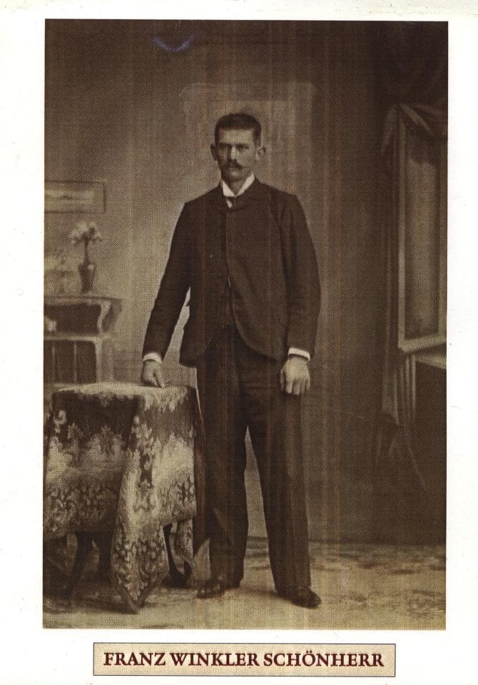 Friedrich Hermann Winkler Gerhardt (LEGA2002), n. Kleinpörthen, Sajonia, 11 abril 1838, + Frutillar 17 agosto 1921, sepultado chacra N°40 Frutillar; socio de la firma Klocker & Winkler en Frutillar 1891/1892; propietario de los fundos Santa Ana y Araucano en Chan-Chan, comuna de Río Negro, y Cancha Rayada en la Comuna de Puerto Varas; participó en la formación de la Iglesia Evangélica del Lago Llanquihue; propietario de una fundición de hierro; fundador del Club Alemán de Frutillar; ▬ c. I° Puerto Montt 17 agosto 1861 c. Ana Therese Klocker Hechenleitner [n. Mittel-Zillerthal, Silesia, 18 julio 1844, + Frutillar, 05 agosto 1865, sepultada chacra N°40 Frutillar; h. Veit Klocker Schönherr y Susanne Hechenleitner Wechselberger]; ▬ c. II° Puerto Montt 17 julio 1871 c. Bertha Klocker Hechenleitner [n. Erdmannsdorf, Silesia, 08 mayo 1854, + Frutillar 08 julio 1890, sepultada chacra N°40 Frutillar; h. Jakob (Jacob) Klocker Schönherr y Therese Hechenleitner Hausser (var. Hanser)]. Hijos: