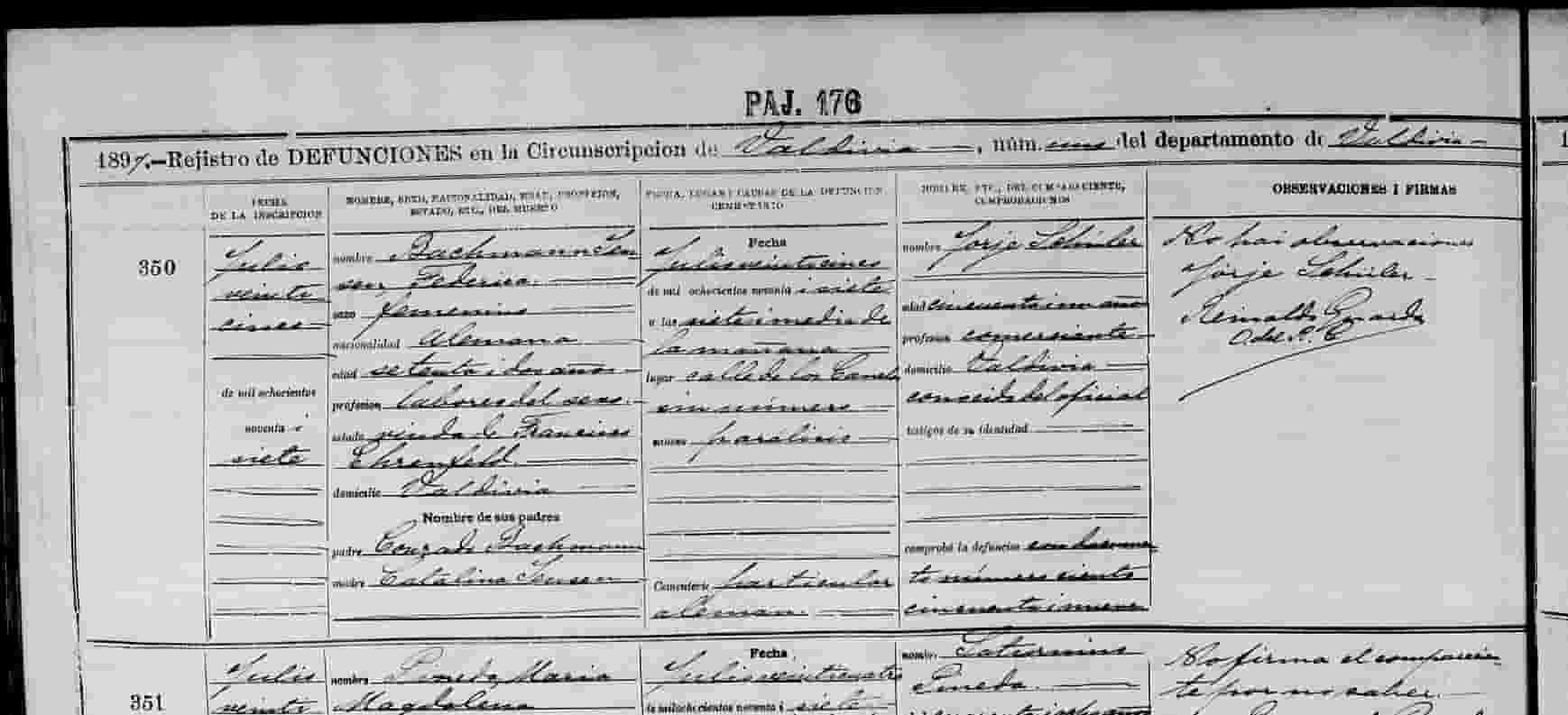 72. QUIV01 - Pablo Quintana Villanueva. (a) Comunicación personal; (b) Información recopilada en el Cementerio Alemán de Valdivia.