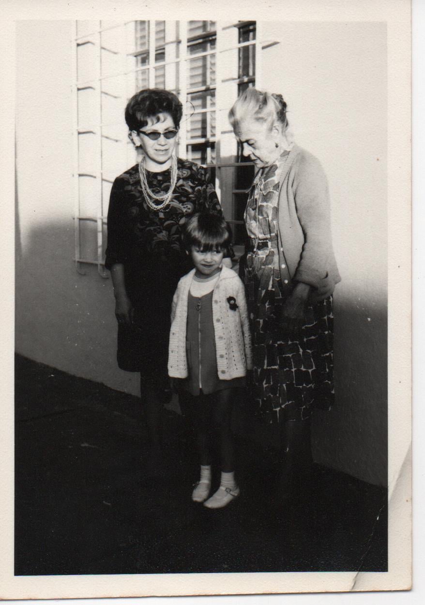 Isabel Cepeda Guyot, Nancy Cepeda Rodríguez e Isabel Guyot Peña en calle Miguel