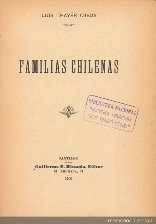 Familia estudiada en el libro de Luis Thayer Ojeda, Familias Chilenas, Guillermo E. Miranda, Editor, Ahumada 51,Santiago, 1906. Este libro puede obtenerse gratis desde el sitio