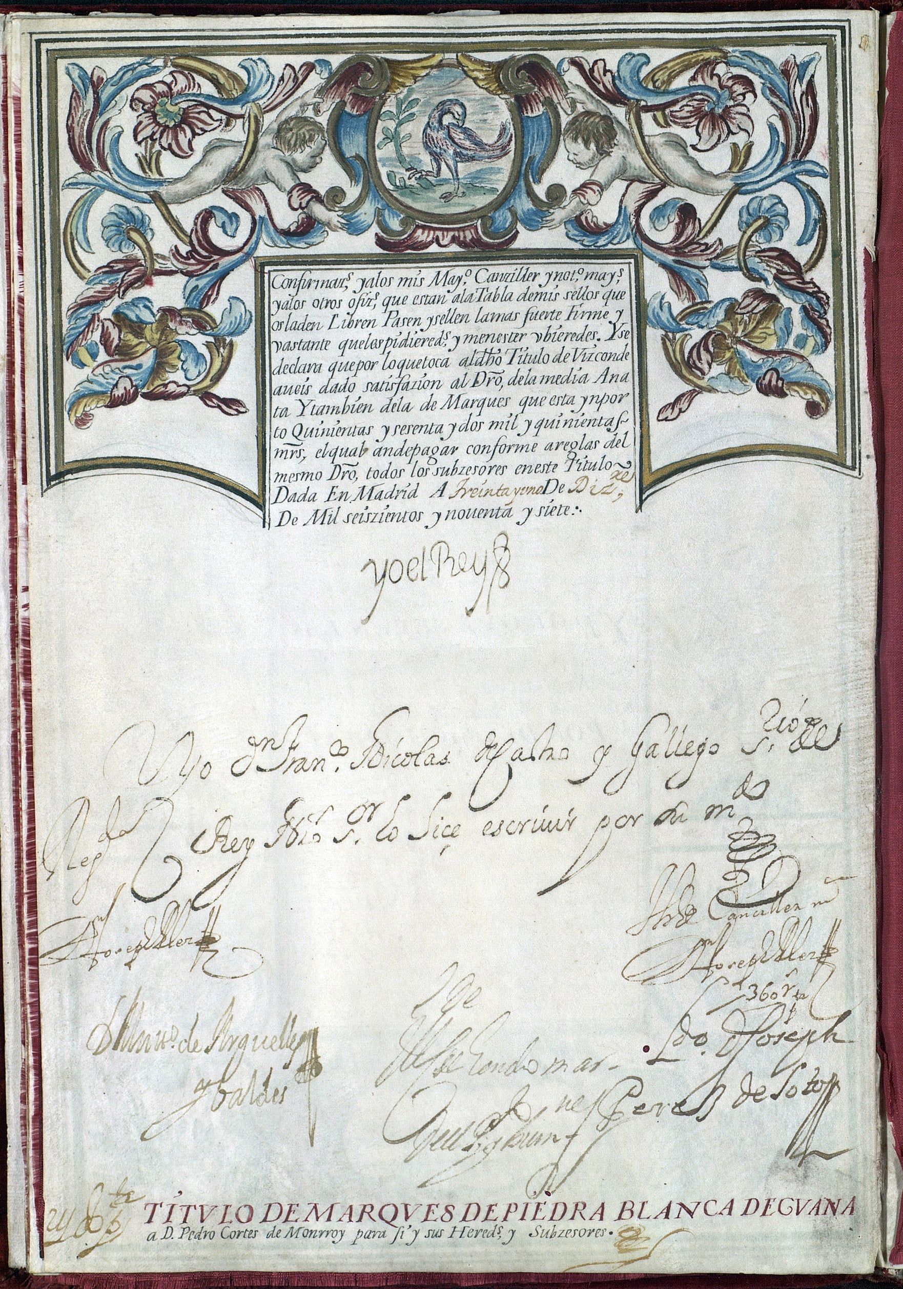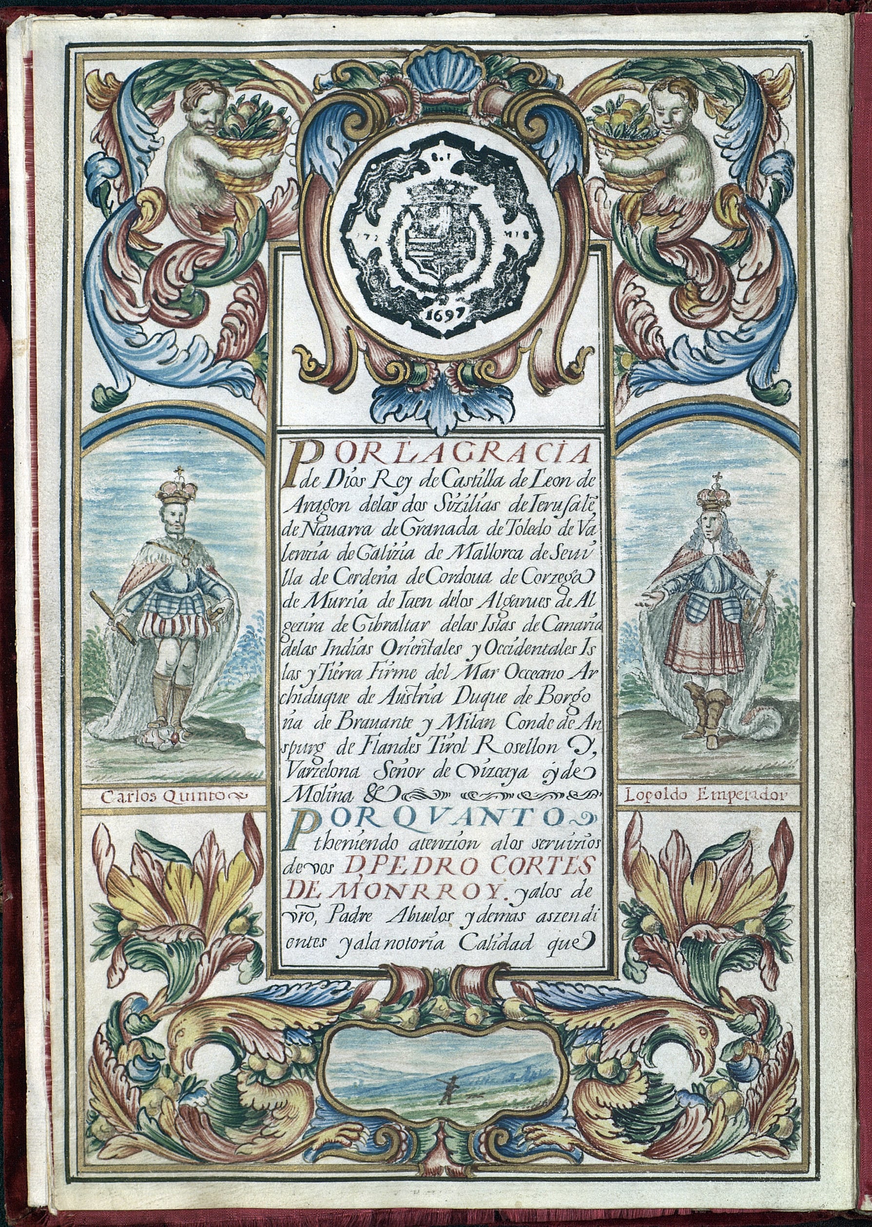 Marín de Poveda Titulo de Marquesa de Cañada Hermosa y de Mayorasgo en España por reclamos; Testimonio de la información producida por parte de la señora Marquesa de Cañada Hermosa, vecina de Chile, acerca del origen, limpieza de sangre, nobleza, méritos y servicios heredados y adquiridos de Don Eugenio Cortés y Azúa, Seminarista de Bergara. Sello Segundo, seis reales, año de mil setecientos noventa y dos y noventa y tres.