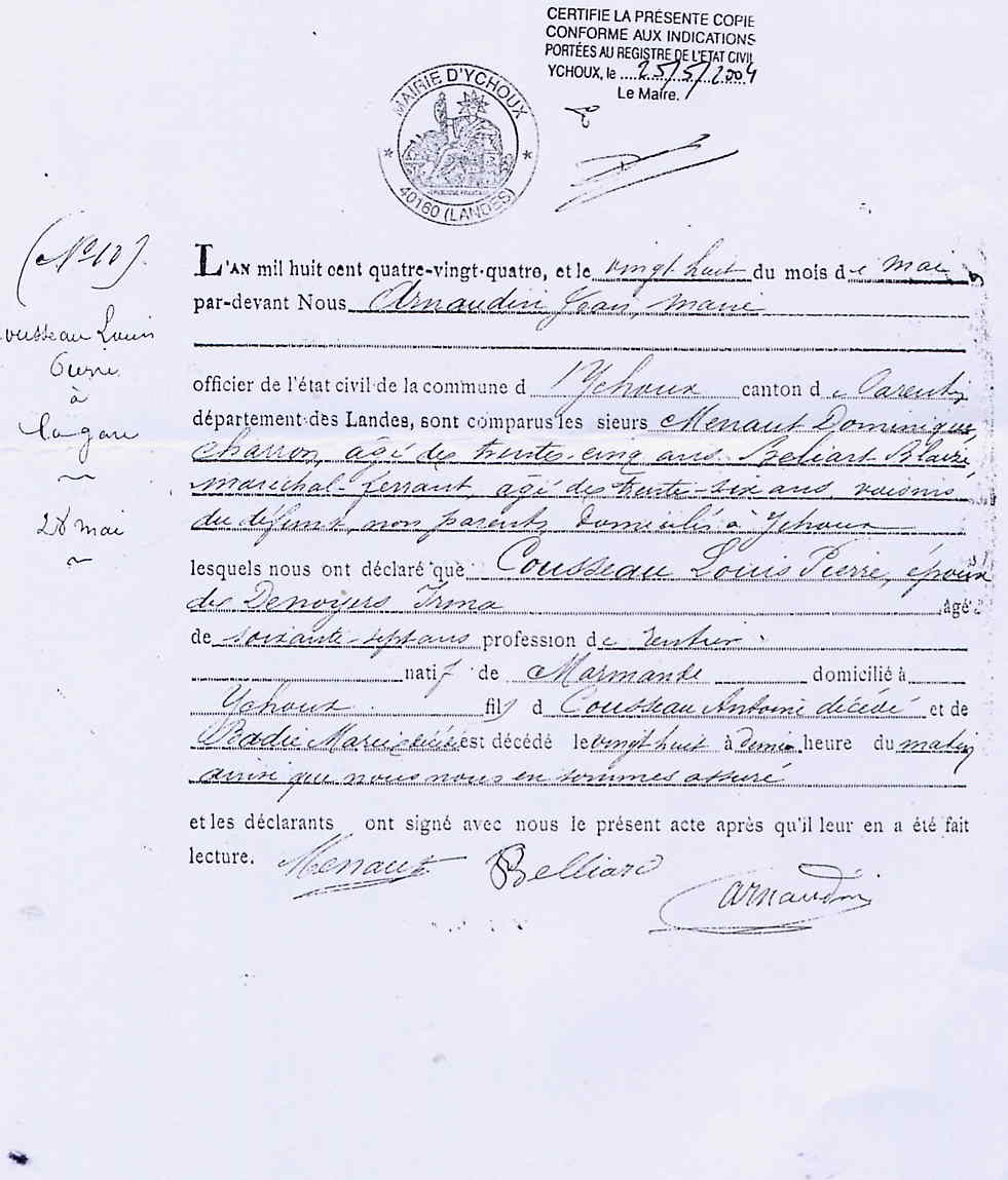 Parentis-en-Born Landes, 14 abril 1841, + Parentis-en-Born, Landes,
