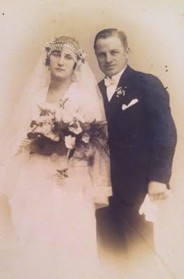 Herminia "Mutti" Schleef Peters (5) [FOTO MATRIMONIO 1924], n. Río Bueno 1906, + Santiago 1988; estudios en las monjas en Río Bueno; tras su matrimonio vivieron en Temuco y debido a la crisis de 1929, se trasladó con su esposo al