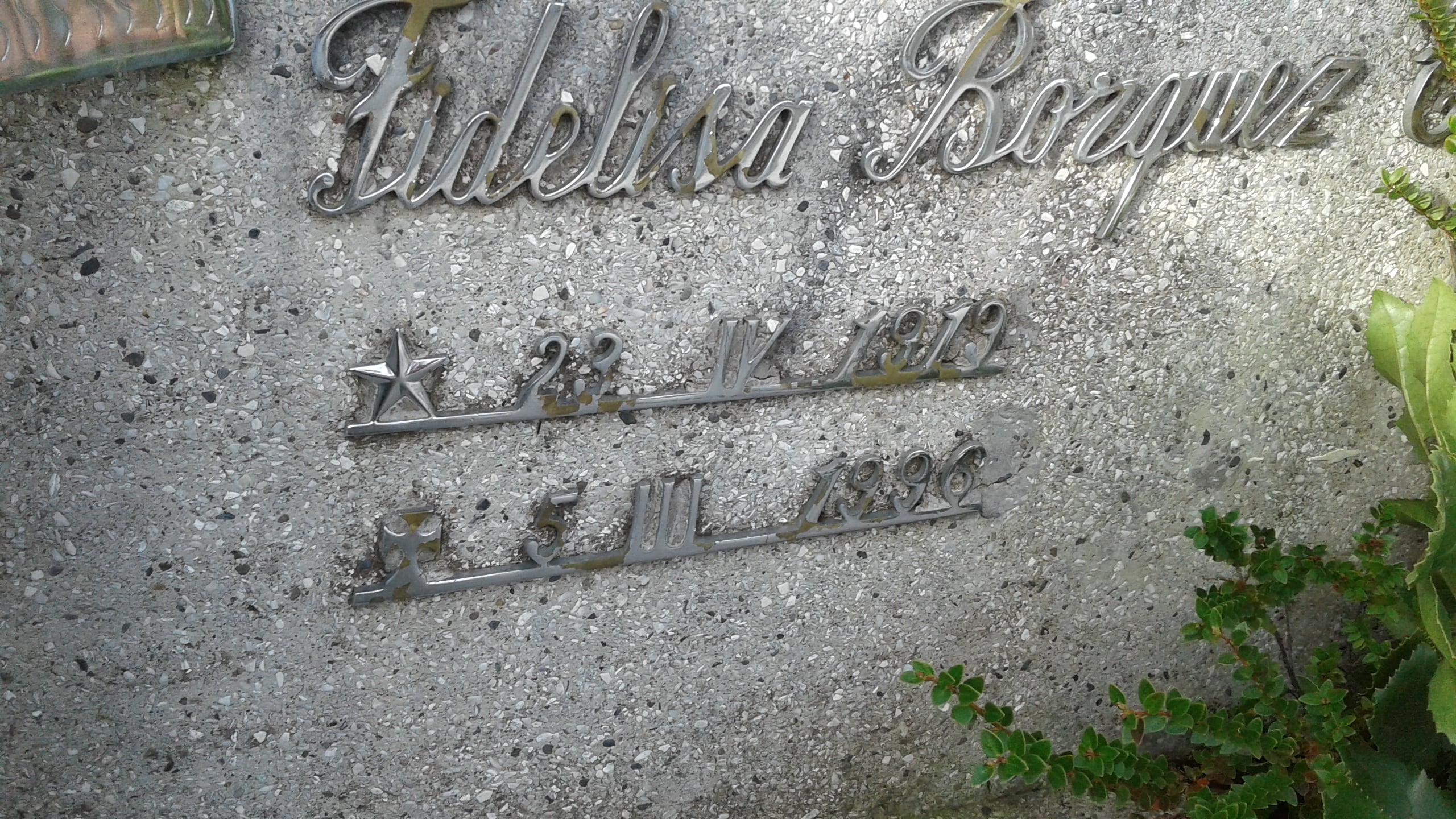 Luisa Bórquez Patiño (FAMI01), n. c. 1878; citada como costurera en 1894; domiciliada en Valdivia en 1894; ▬ soltera, c. calle de Maipú N°15, Valdivia, 19 julio 1894❐ (RC Valdivia, p.22/N°43; testigos: Antonio Gagliastri y Carlos Di Biagio) c. Félix Corte Dafforno [n. c. 1867; italiano; h. Juan Bautista Corte y Clementa Dafforno].