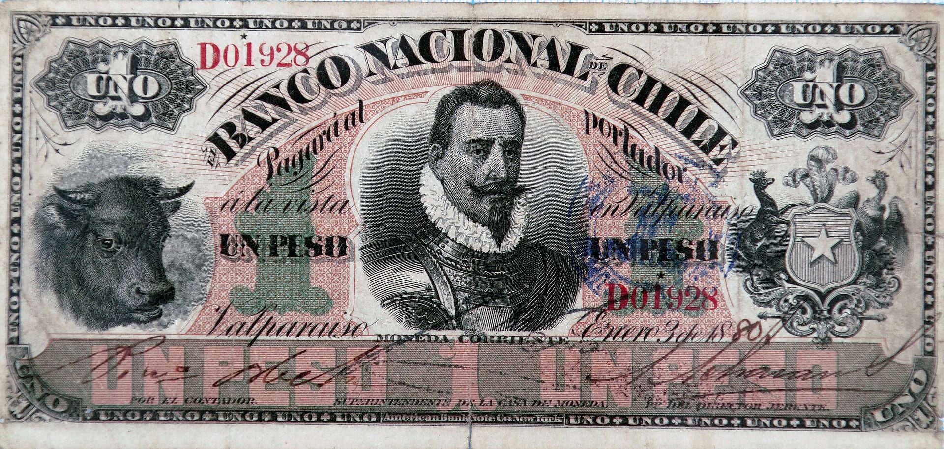 Billete de 1 peso del Banco Nacional en 1880. Fuente:
