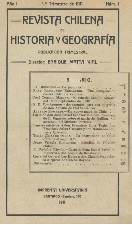 Fundada en 1911 por la Sociedad Chilena de Historia y Geografía.