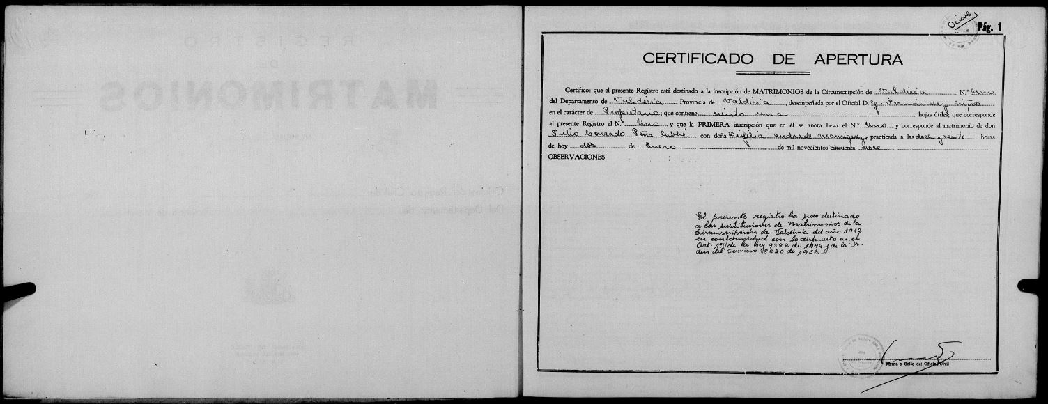 Libro N°1 de Matrimonios (1912) - Registro Civil de Valdivia