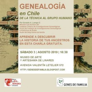 La charla dictada por Gonzalo A. Luengo O. entrega una visión general de la genealogía en Chile actualizada a la fecha. Surge como iniciativa de Gonzalo Flores Domarchi, Técnico en Bibliotecología, con el apoyo del Museo de Arte y Artesanía … VER +